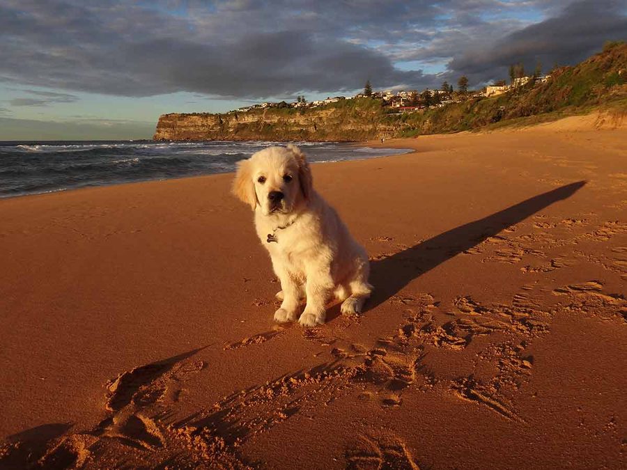And one of my favourite photos of puppy Dozer – the first day I took him down to the beach.