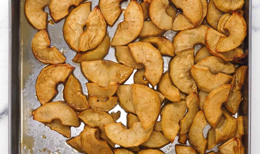 - Toss: In a large bowl, sprinkle spice mix over apple slices. Toss well with hands, separating pieces that are stuck together.