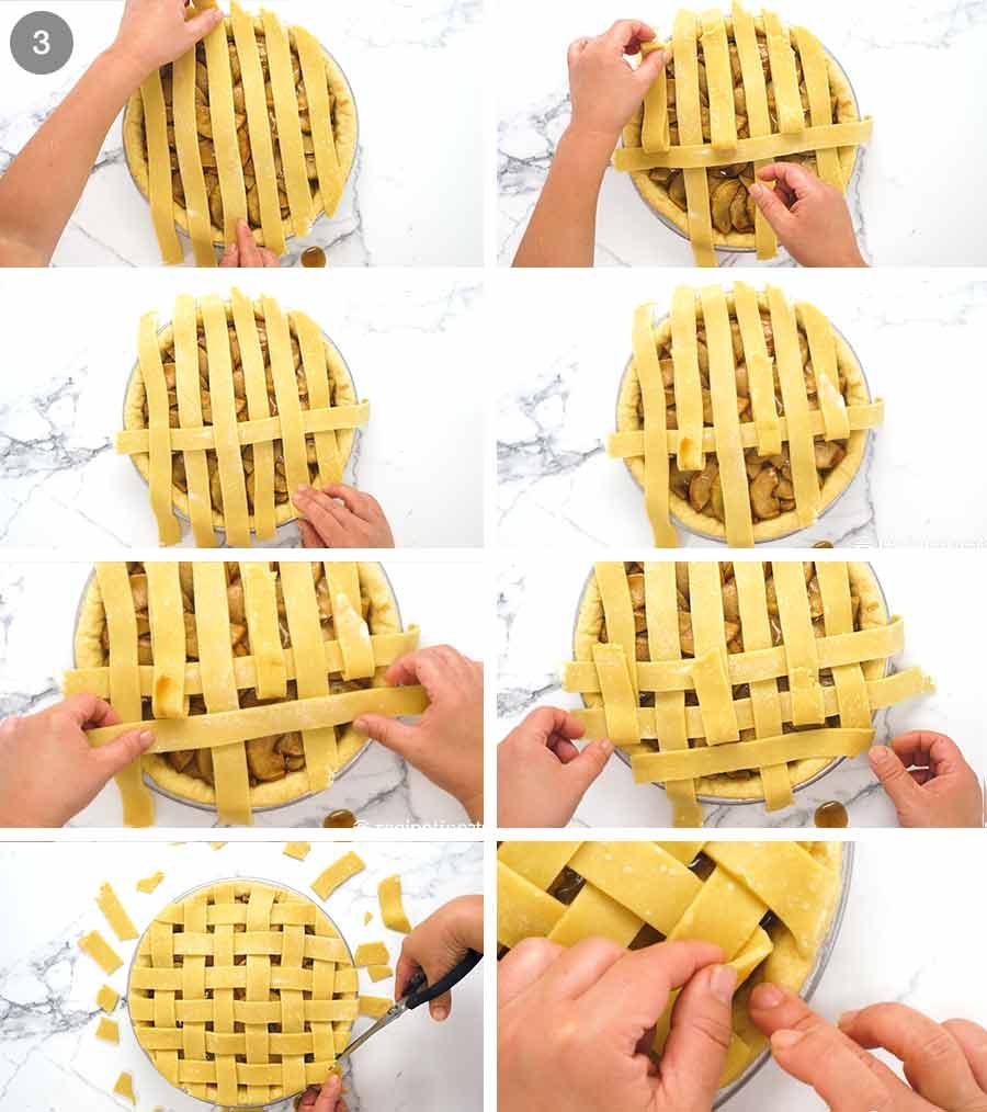 While the apple is baking, roll out the pie lid and cut the lattice strips, then refrigerate.