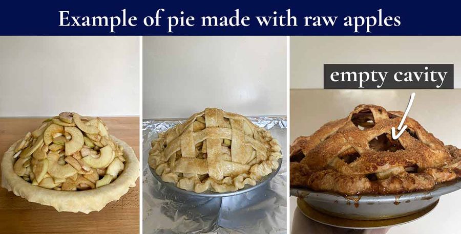The apples are cooked down first so you don’t end up with a giant empty pie-lid cavity