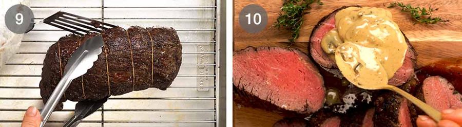 Creamy mushroom sauce – A special creamy mushroom sauce, an elevated version of the everyday mushroom sauce I use midweek, made using every drop of the precious pan drippings. There’s little drippings from tenderloin compared to other beef, so choosing the right sauce is important. More on the sauce below.