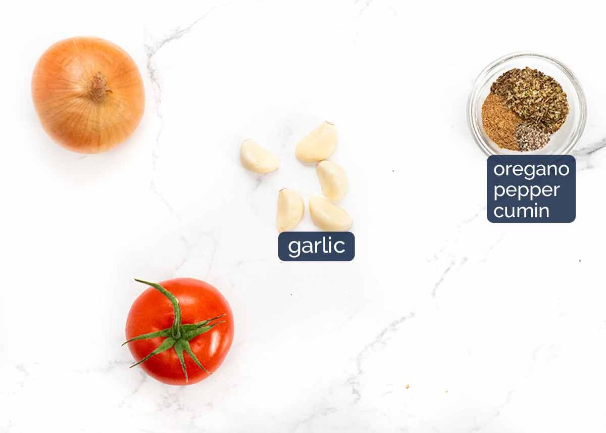 Garlic and onion – Yes, five cloves of garlic seems like a lot! But the long simmering process turns them sweet and mellow. The onion meanwhile gives the sauce more thickness and body, and some wetness to create the paste. Use 1/2 a large onion or 1 small onion.