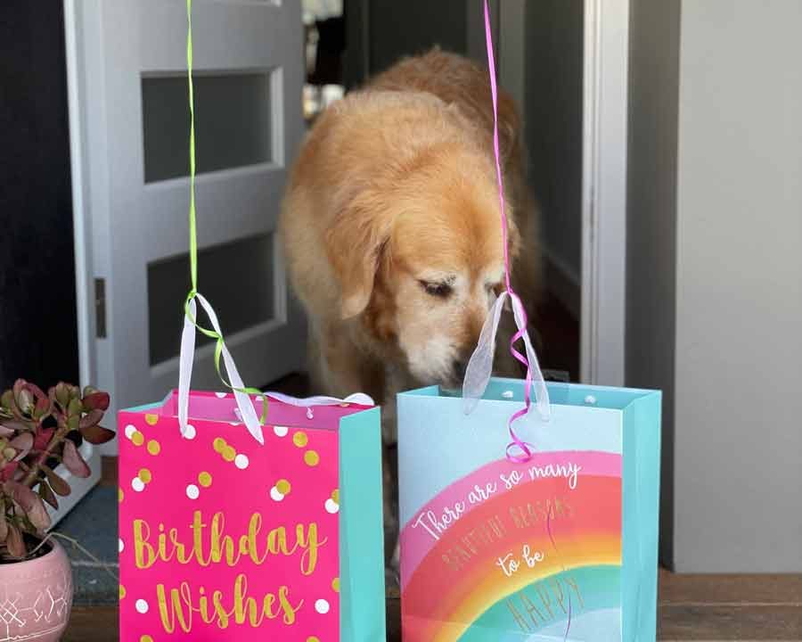 This is how we celebrate birthdays at Team RecipeTin during lockdown – with goodie bags delivered to each team member for a virtual Zoom birthday party!