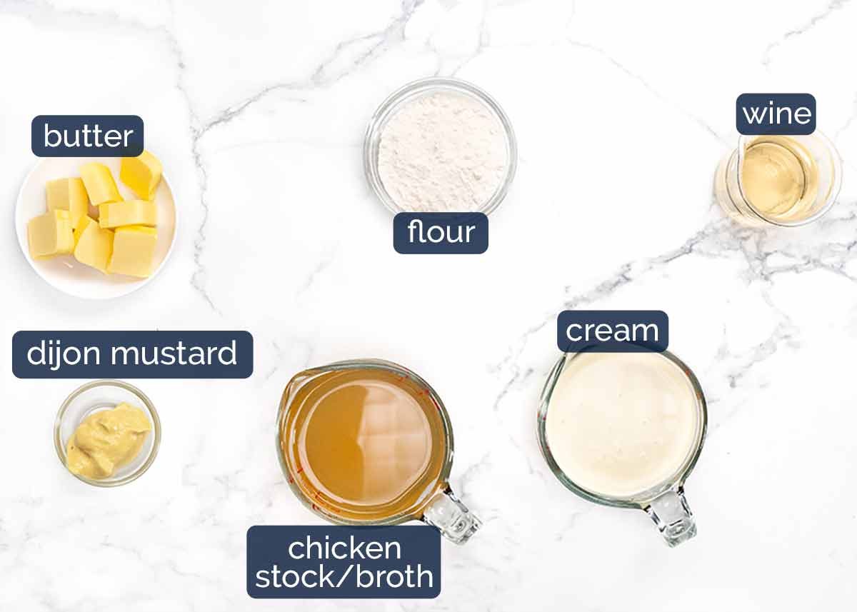 Chicken stock/broth and cream – These are the liquids that we use to make this sauce. Chicken stock has more flavour than using just water. And cream is richer and has a more luscious mouth feel than using milk, though you could substitute with milk if you don’t have cream (I’d add a dab of extra butter), or if you really want to reduce the calories in this recipe.