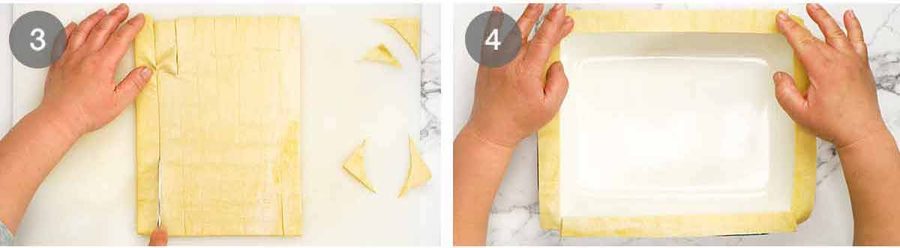 Note: If you are not using pastry strips along the rim, don’t brush the rim with egg whites as the lid will adhere too strongly to the baking dish.