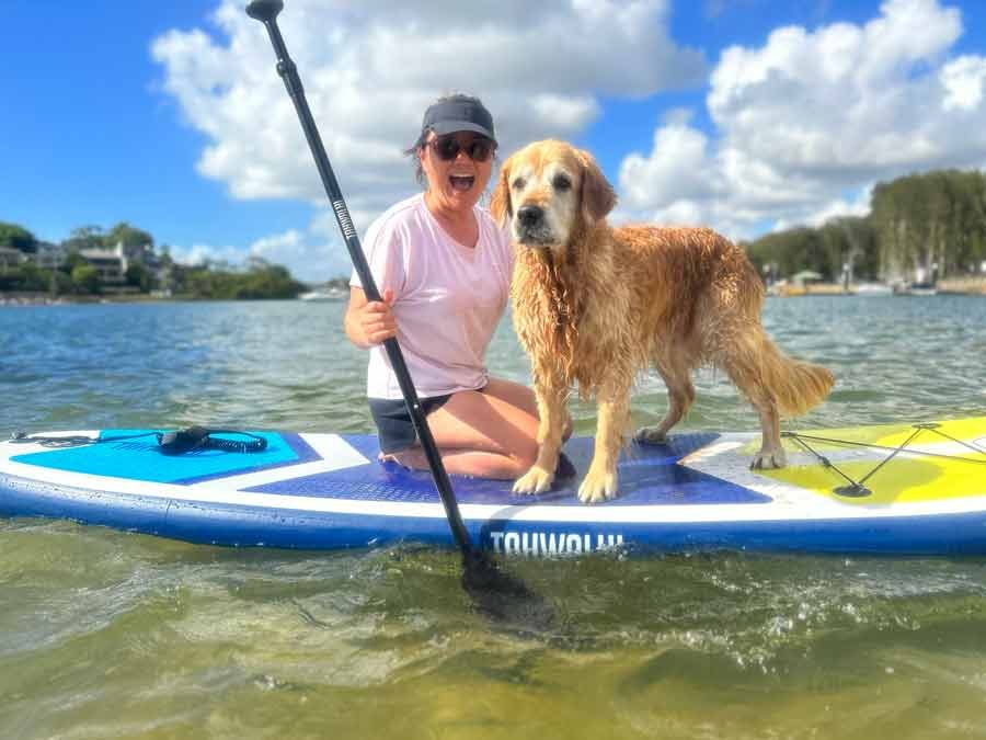 Stand up paddle boarding with Dozer. (He stood. I didn’t!)