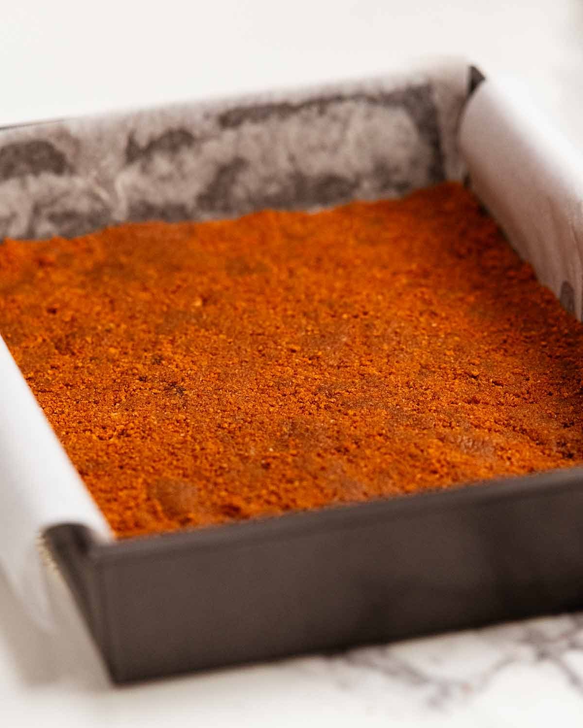 ⚠️ Not pressing together? Just add a little extra melted butter. You might have this problem if you used a lower fat biscuit than Biscoff, or if they were a bit stale.