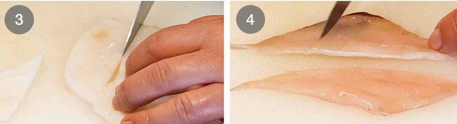 - Cut the squid into pieces 5 x 2cm (2 x 1") rectangles (approximately).