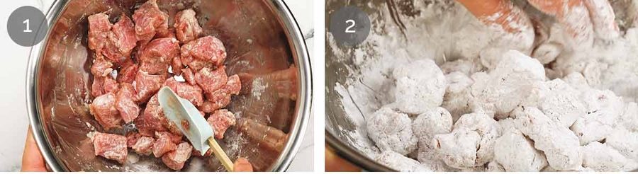 2 after removing excess cornflour very gently toss pork in canola oil