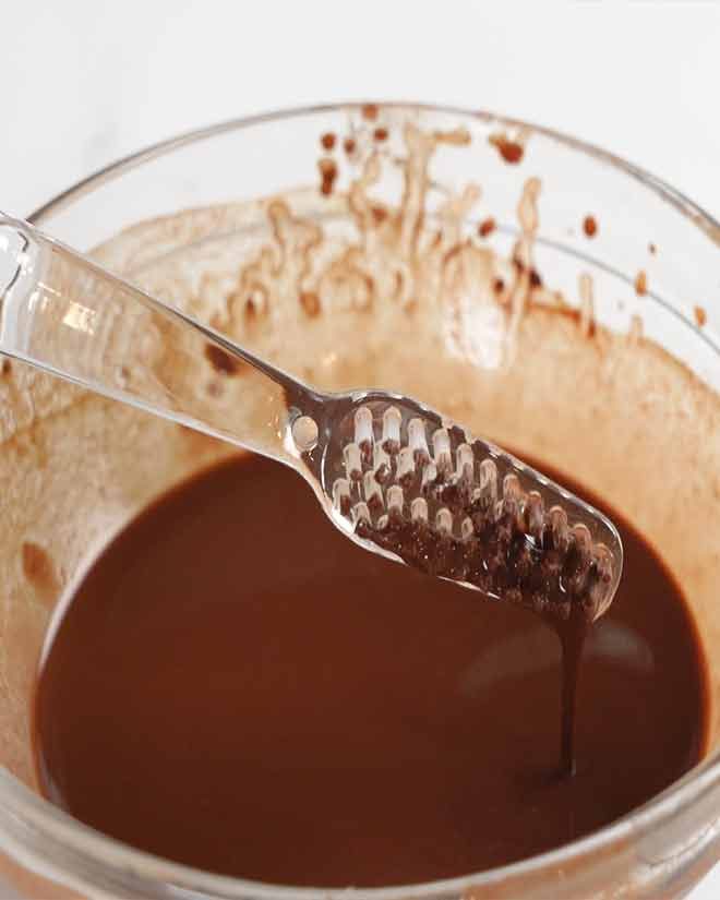 You’ll love this! It’s simply cocoa powder + boiling water which is gently flicked onto the frosting using a toothbrush!!