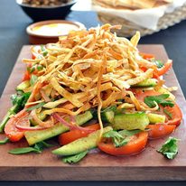 - Transfer salad onto a platter then pile on the crunchy flatbread ribbons.