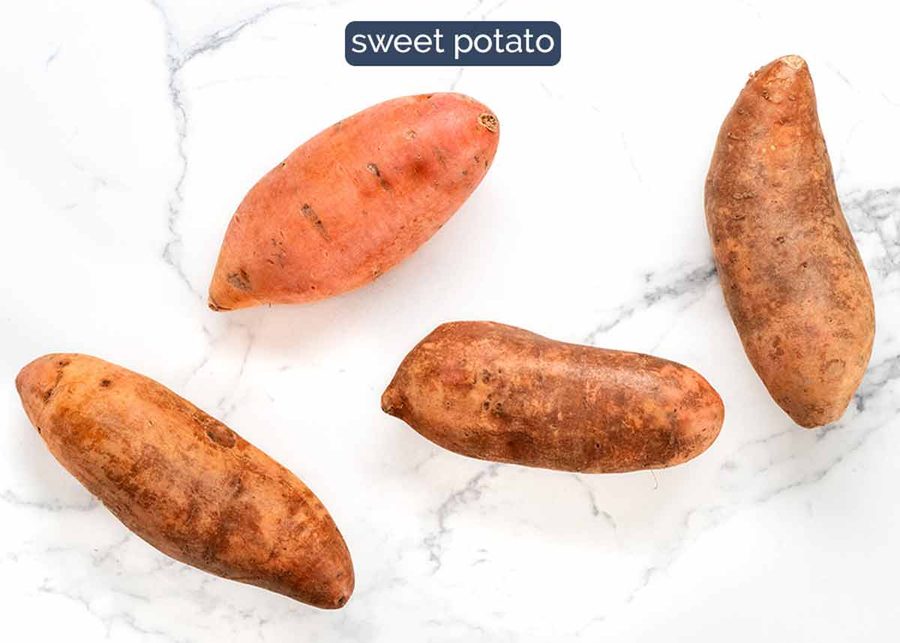 - 4 x 300g / 10oz sweet potatoes , skin on, washed and dried