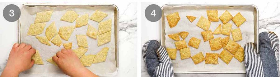 - Serving – Remove from the oven and leave the crackers to cool on the tray (~20 minutes). Make dip or prepare cheese platter worthy of your homemade crackers. Then attack!