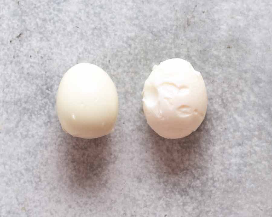 As for the burning question about why some eggs peel neatly and others end up cratered like the moon? Ahh, so much information out there! The only thing I know for sure is that older eggs peel more neatly than fresh eggs. This is simply because the membrane of freshly laid eggs is adhered more firmly to the shell so itβs harder to peel off. The older the egg, the more that membrane degrades = easier to peel.