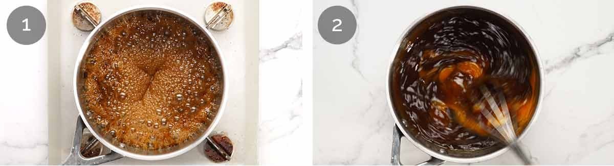OK, base done, pecans chopped, let’s make the filling, a simple melt-and-whisk job!