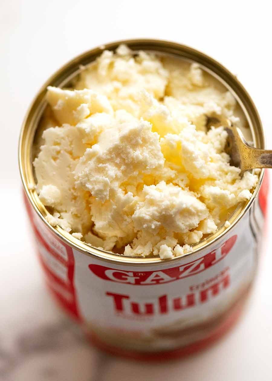 Tulum Turkish cheese (pictured below) – Think of this as a kind of Turkish feta, it crumbles and tastes very similar to it! However it is slightly less salty. The can of tulum pictured below was purchased from a Turkish grocery called Gima Supermarket in Auburn (Sydney). Substitute with feta!