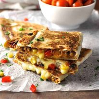 Yum yum yum!!! Just made these for dinner using some leftover roast pork and tomatoes instead of peppers. Soooooo tasty!! Took longer than planned as I burnt the first lot of caramelised onions and had to start over 😂 also never thought to use one tortilla folded – genius!!! Thanks for another fantastic recipe 🤗