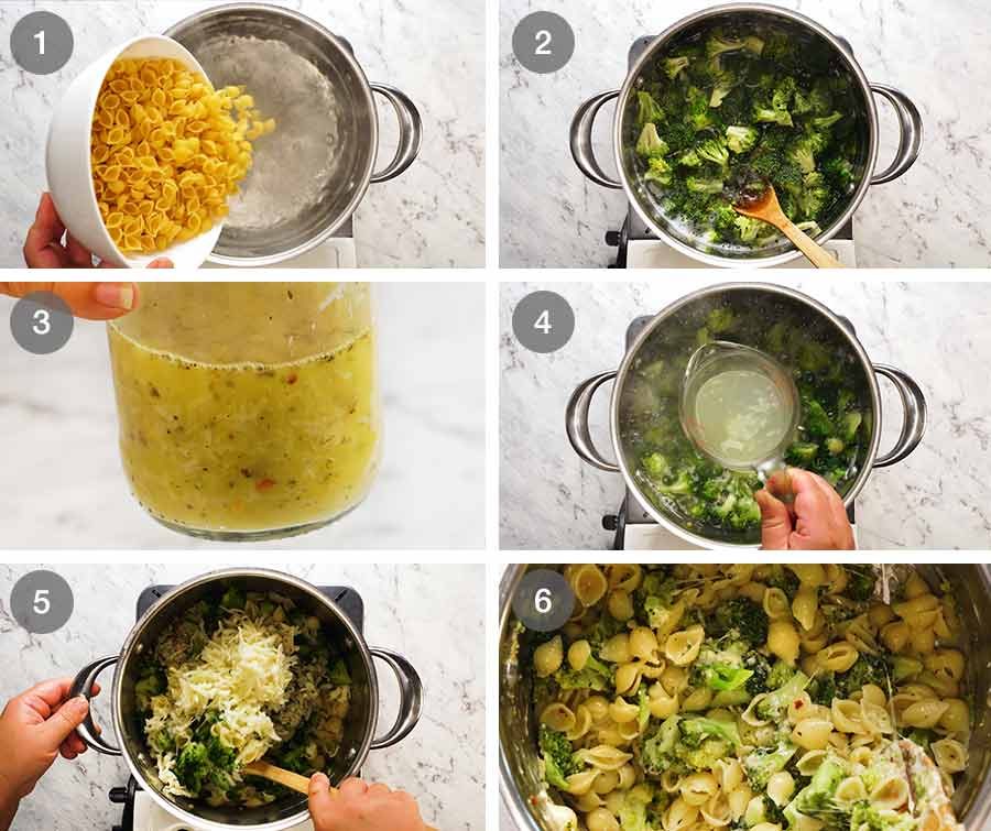 - Cook broccoli: Add broccoli into water 1 – 2 minutes before pasta is cooked.