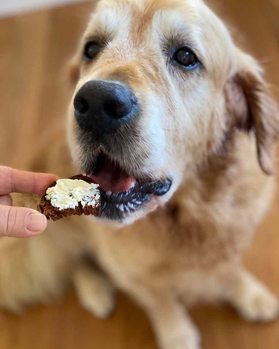 No potato salad for you, Dozer! Too much garlic and onion. Here, help me polish off this blue cheese instead.