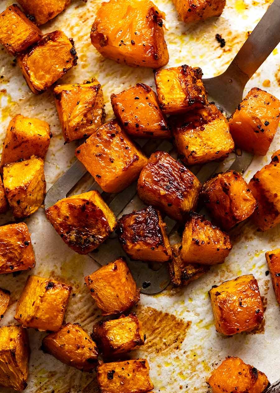 Oh – and yes, pumpkin. 😂 Any type that takes your fancy, including butternut (which is sometimes called “butternut squash”, but we just call it “butternut pumpkin” here Down Under). Sweet potato also works just as well – though perhaps an extra 5 minutes in the oven.