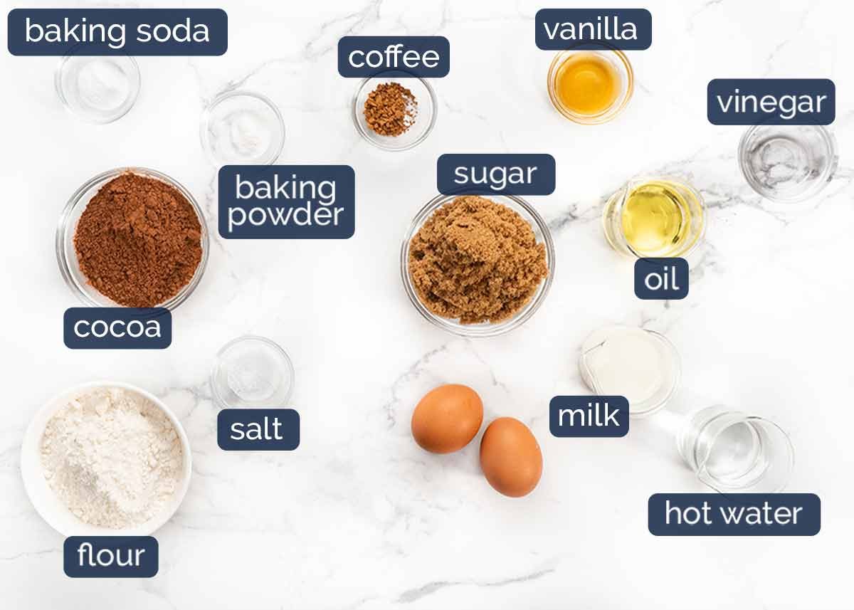 Cocoa powder – Regular unsweetened cocoa powder, not dutch processed. Well, dutch processed will work, but it’s more expensive and unnecessary here, I feel. Reserve it for the special occasion cakes where I insist on using it! 🙂